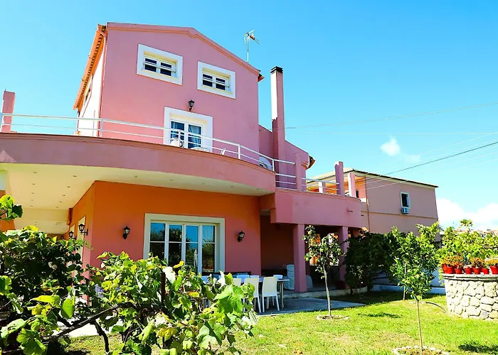 从住宿场所到科孚岛国际机场开车只需5分钟. 别墅海滩设施包括太阳伞.